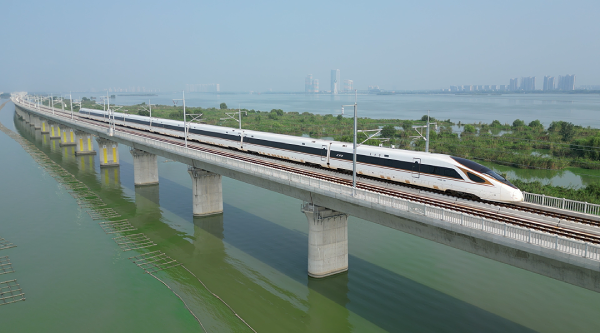 首趟试运行列车驶过常州特大桥滆湖段