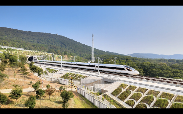 试运行列车经过沪宁沿江高铁江阴站