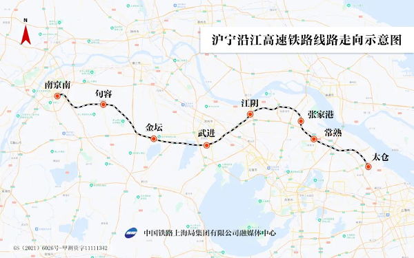 沪宁沿江高铁线路走向示意图