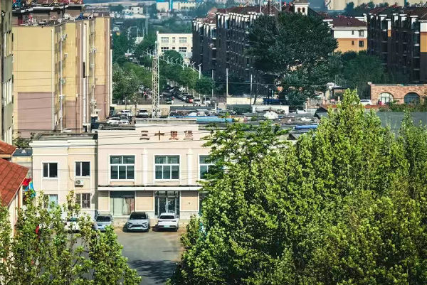 傍晚,墙壁上树影婆娑,与车站对面的老房子一起,将人们带回到从前车马慢的旧时光。